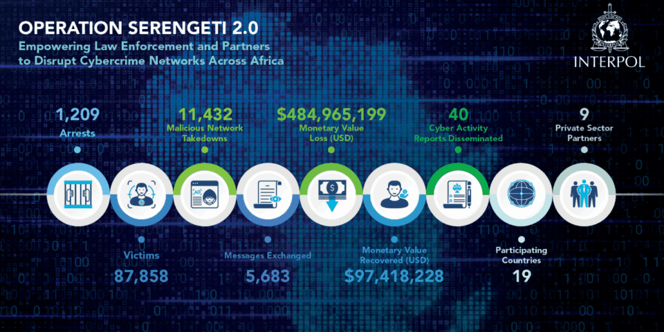 Interpol said the crackdown, known as Operation Serengeti 2.0, ran from June to August 2025 and focused on ransomware, online scams and business email compromise.