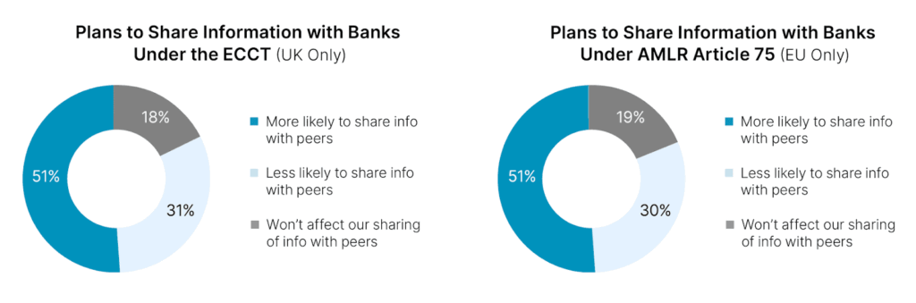 In Nasdaq Verafin’s survey, the same percentage of EU respondents (51%) confirmed a greater likelihood of sharing information with other banks under this legislation.